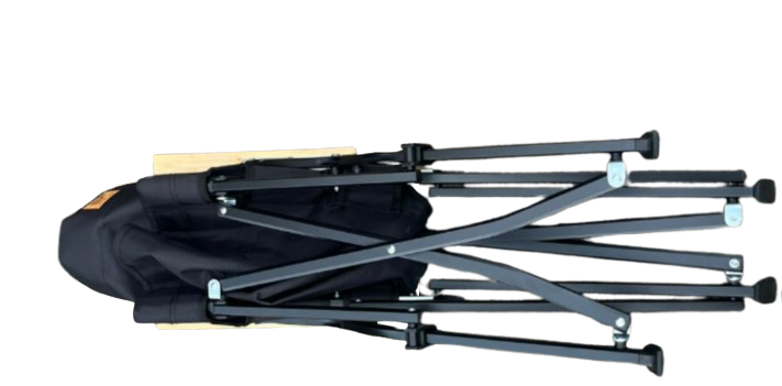 Dimensões montada: aprox. 64 × 54/47 × 36/83 cm (~21 × 24 × 32 pol) Tamanho da embalagem: aprox. 16 × 20 × 91 cm (6,3 × 8 × 36 pol) Estrutura: tubos de alumínio (24 × 15 mm e 20 × 15 mm) com pintura aerosol Assento e encosto: tecido PVC 600 × 300 D, dupla camada Capacidade de carga: até 264 lb (≈120 kg)